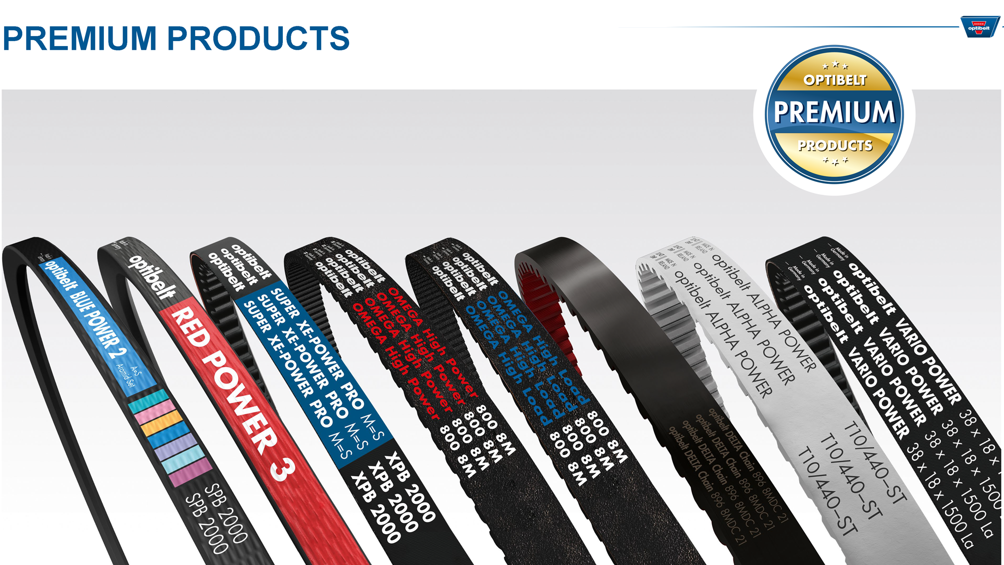 我公司為德國Optibelt(歐皮特)傳動帶核心授權經銷商,現貨庫存產品規格齊全,能滿足各種客戶需求。 ●三角帶 ●同步帶 ●聯組帶 ●多楔帶 ●特殊圓帶、平帶